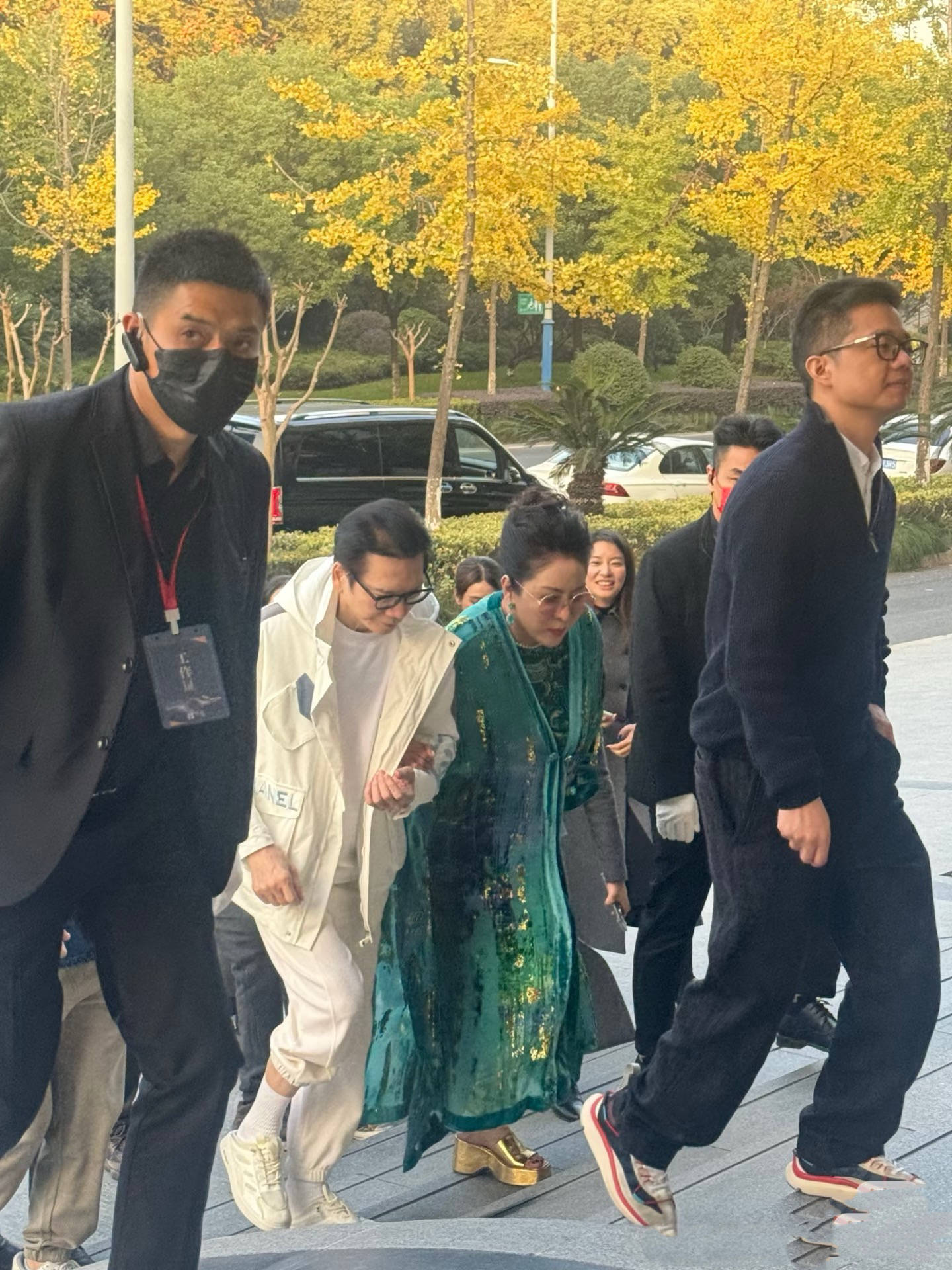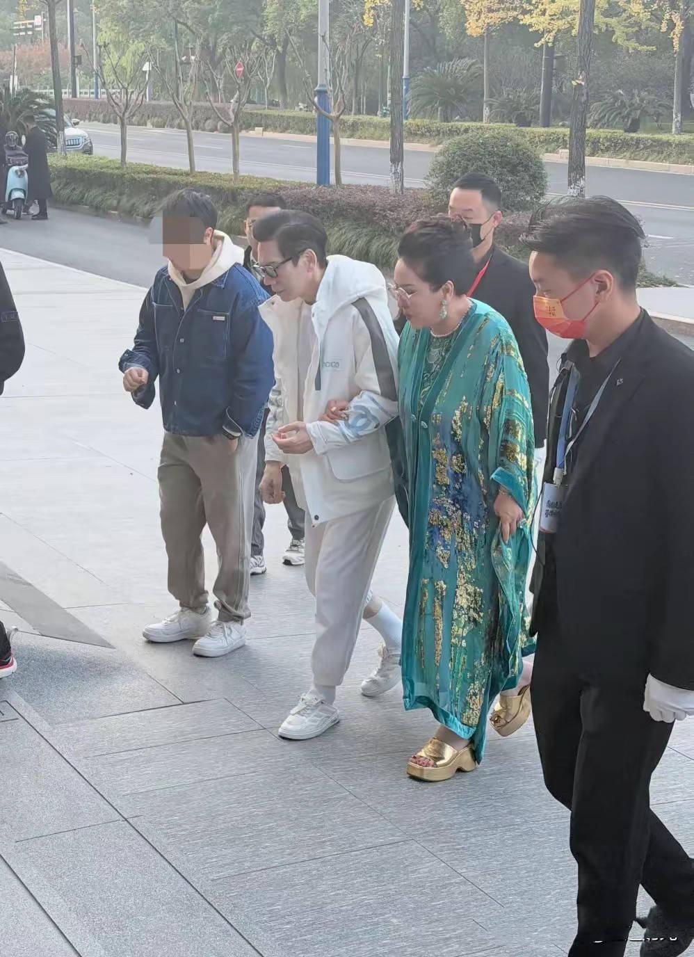 而且向太年纪大了,上台阶的时候身体有些前倾,看着有点驼背的感觉。其实向太能坚持自己走已经很不容易了,毕竟大多数时候她都是“坐轮椅”的。