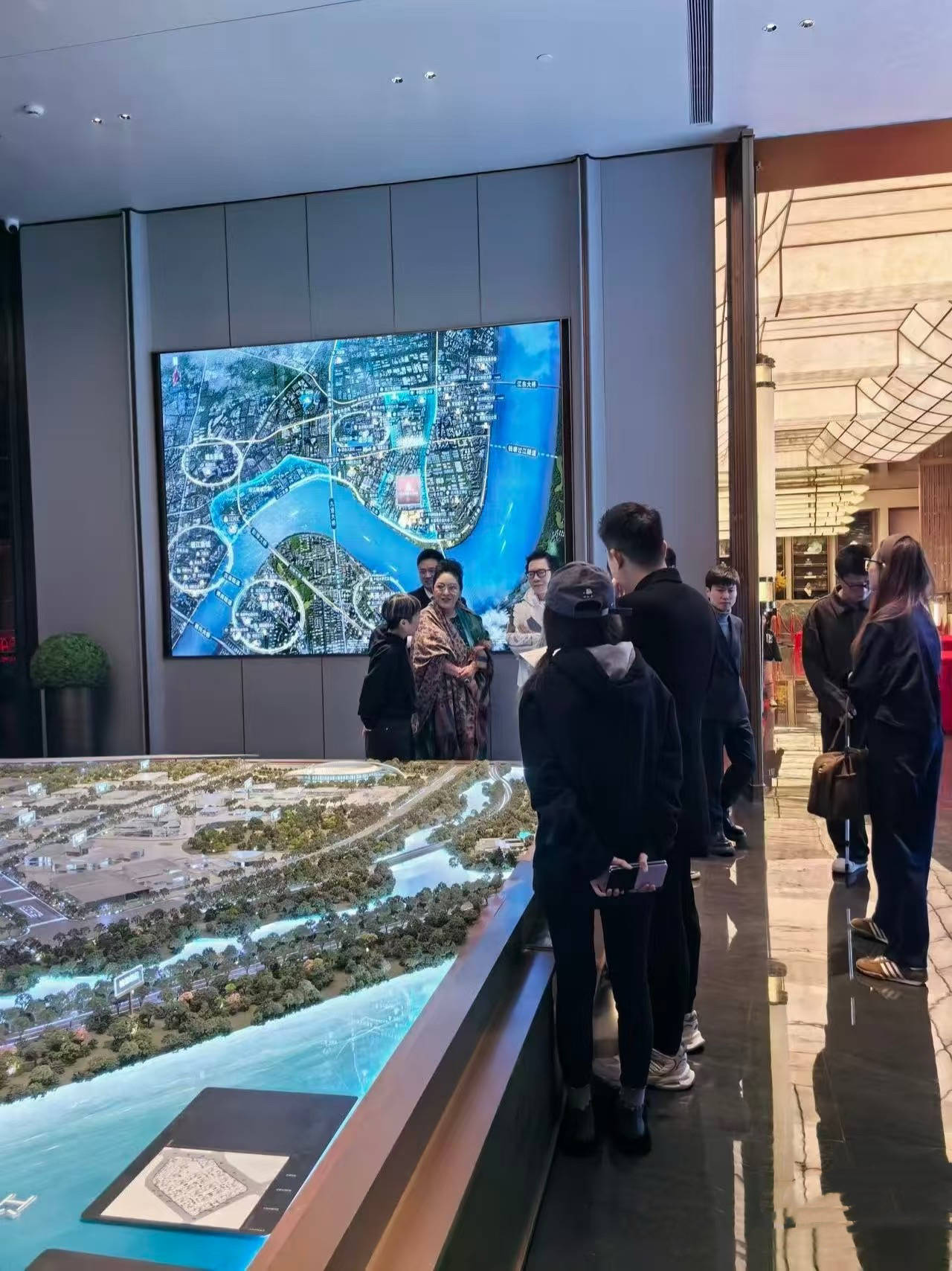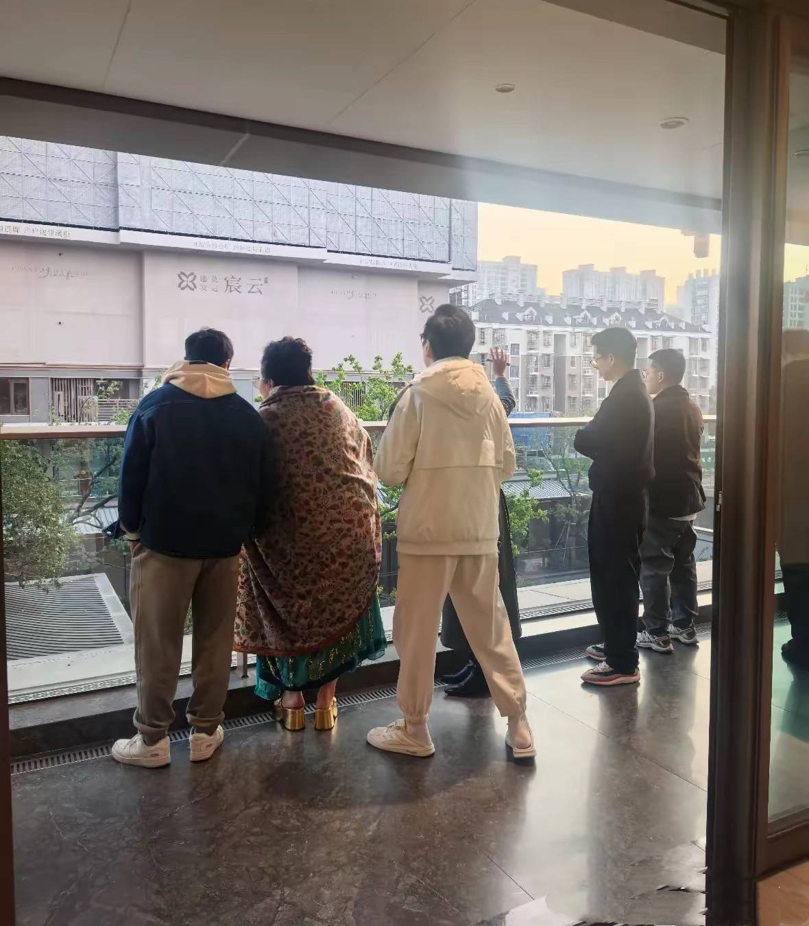 向太夫妇可能是刚从香港赶过来,那边的天气会相对温暖一些,所以他们的打扮和售楼处工作人员,就像是在两个季节。