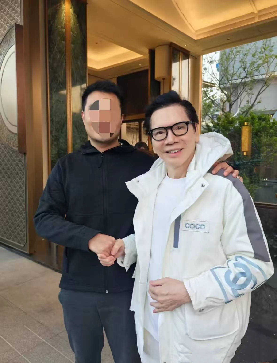 向太夫妇还是蛮有亲和力的,遇到热心的网友想要合影,他们都笑着配合了。向华强看着很年轻,一点都不像76岁的年纪。这个角度看向华强和儿子向佐真是太像了。
